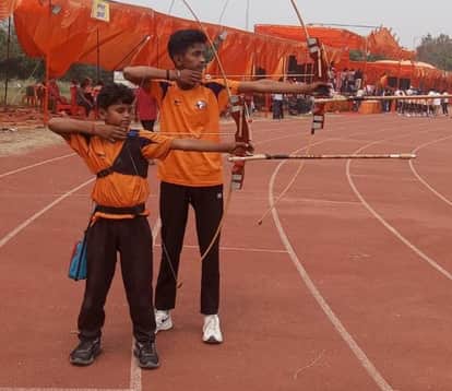 अयोध्या में राज्य स्तरीय बाल क्रीड़ा प्रतियोगिता में तीरंदाजी करते भदोही के छात्र। स्रोत सुचना