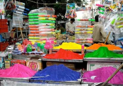 गोपीगंज बाजार में सजी रंग गुलाल की दुकान। संवाद
