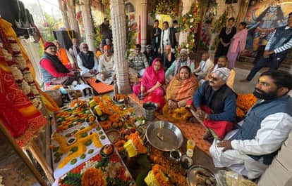 काली माता मंदिर के वार्षिकोत्सव में बैठे यजमान और श्रद्धालु। संवाद
