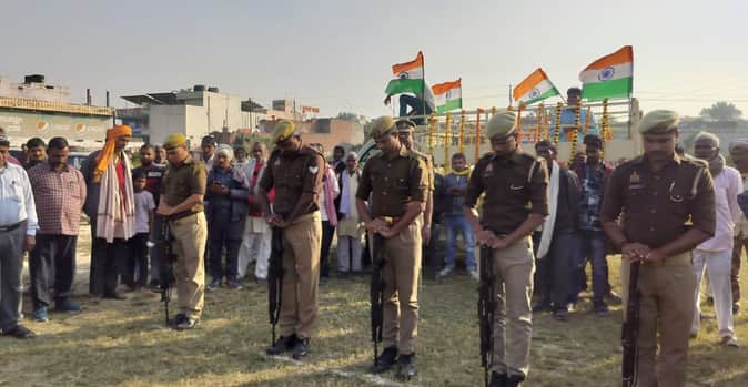 मुरलीधर बिंद को गार्ड ऑफ आनर देते पुलिस के जवान। संवाद
