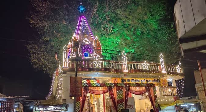 नई बाजार मेंआकर्षक झालरों से सजाया गया माता शीतला मंदिर। संवाद