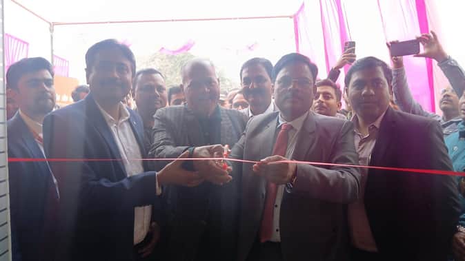 बैंक ऑफ़ बडौदा की शाखा का फीता काटकर उद्घाटन करते वाराणसी अंचल प्रमुख मिथिलेश कुमार। संवाद