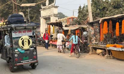 ज्ञानपुर नगर में सड़क पर लगी दुकानें। संवाद