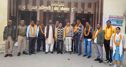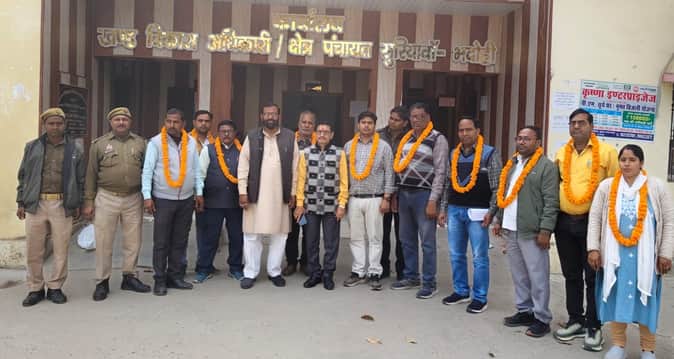 विकासखंड सुरियावां में माला पहन कर खड़े चयनित पदाधिकारी। स्रोत संगठन