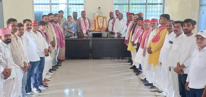 सपा कार्यालय पर महर्षि कश्यप और राजा निषादराज गुह्य की जयंती मनाते लोग। स्रोत सपा