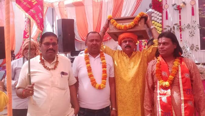 गंगेश्वर नाथ धाम में निकली कलश यात्रा में शामिल श्रद्धालु। स्रोत आयोजक
