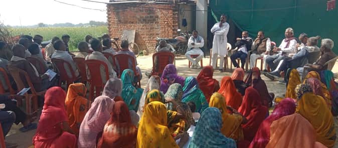 औराई के नक्टापुर में कांग्रेस की चौपाल में बैठे लोग। स्रोत संगठन
