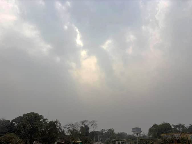 दोपहर के समय आसमान में छाए बादल। संवाद