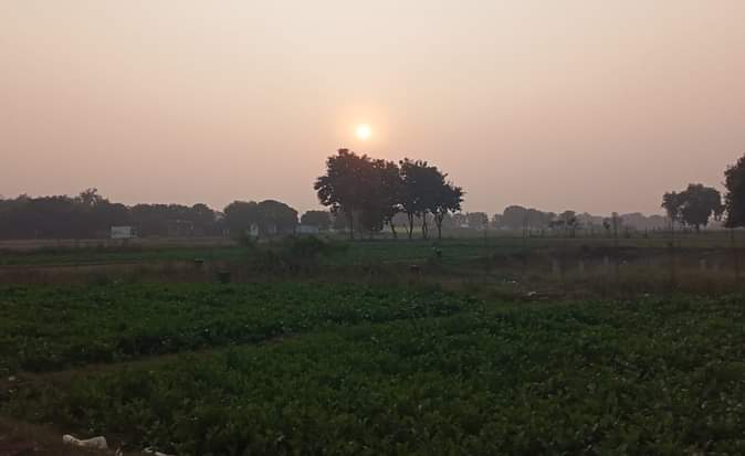 भिदिऊरा गांव में सूर्यास्त के समय लाजिमा बिखेरते सूर्यदेव। संवाद