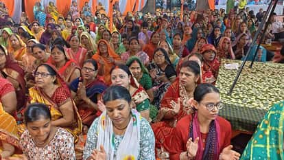 नई बाजार काली माता मंदिर पर कथा सुनते श्रद्धालु। संवाद