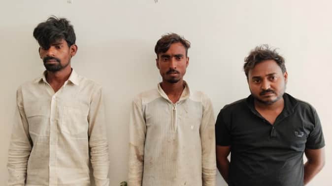 पुलिस लाइन में गिरफ्तार अंर्तराज्यीय पशु चोर गिरोह के सदस्य। स्रोत: पुलिस