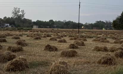 वेदपुर के पास खेत में पड़ा गेहूं का बोझ। संवाद