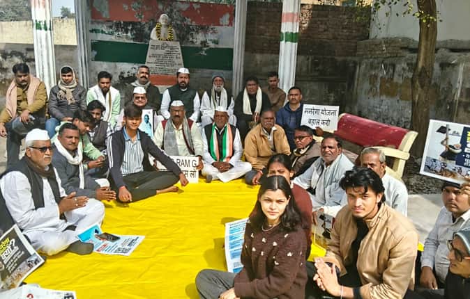 ज्ञानपुर ब्लॉक में ज्ञानपुर नगर के गांधी पार्क में ब्लॉक अध्यक्ष महेश चंद्र मिश्रा एवं ब्लॉक प्रभारी अवधेश पाठक के नेतृत्व में धरना दिया। डीघ ब्लॉक में त्रिलोकीनाथ बिंद के नेतृत्व में कांग्रेस कार्यकर्ताओं ने बीडीओ कार्यालय पर धरना देकर विरोध जताया। कार्यकर्ताओं ने मनरेगा योजना को पूर्ण रूप से बहाल करने, मजदूरों को नियमित कार्य एवं उचित मजदूरी देने की मांग की। राष्ट्रपति को संबोधित ज्ञापन बीडीओ को सौंपा। जिलाध्यक्ष वसीम अंसारी एवं पूर्व जिलाध्यक्ष डॉ. राजेंद्र कुमार दुबे राजन ने कहा कि मनरेगा गरीबों, मजदूरों और ग्रामीण जनता की जीवन रेखा है। सरकार के मनरेगा को कमजोर करने का कोई भी प्रयास कांग्रेस पार्टी बर्दाश्त नहीं करेगी। उन्होंने मांग की कि मनरेगा कानून को पूरी मजबूती के साथ लागू किया जाए, मजदूरी में बढ़ोतरी की जाए। लंबित भुगतान शीघ्र कराया जाए। जिला कोऑर्डिनेटर सुरेश चंद्र मिश्रा ने कहा कि कांग्रेस पार्टी मनरेगा की रक्षा के लिए लगातार संघर्ष करती रहेगी। जब तक मजदूरों को उनका अधिकार नहीं मिलेगा, तब तक यह आंदोलन जारी रहेगा। इस मौके पर दिलीप मिश्र, दीनानाथ दुबे, सुरेश उपाध्याय, राजेश्वर दुबे, सुरेश गौतम, राजेंद्र प्रसाद मौर्य, शिवपूजन मिश्रा, सुरेश चौहान, शक्ति मिश्रा, राकेश पाल, चंद्रेश तिवारी, हरिश्चंद्र दुबे, संजय पांडेय, नितिन सिंह, जान मोहम्मद, संतोष पाल, रविंद्र बिंद, अरविंद बिंद आदि रहे।
