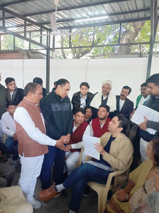 केंद्रीय मंत्री जयंत चौधरी से वार्ता करते बिजनौर के शिक्षक श्रोत शिक्षक