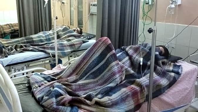 बिजनौर के एक अस्पताल में भर्ती गांव शहबाजपुर के जहर निगलने वाले पति पत्नी। स्रोत संवाद