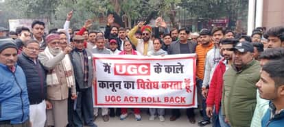 बिजनौर कलक्ट्रेट में यूजीसी के विरोध में ज्ञापन देने पहुंचे स्वर्ण समाज के लोग। संवाद