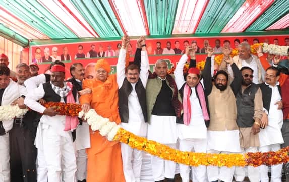 बिजनौर में पार्टी कार्यालय पर सपा की पीडीए पंचायत में सांसद हरेंद्र मलिक व अनुज मलिक का स्वागत
