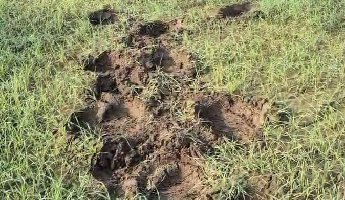 अफजलगढ़ के गांव मुरलीवाला में हाथियों द्वारा रौंदी गई गेंहू की फसल। स्रोत ग्रामीण