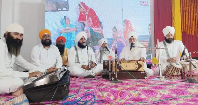 हल्दौर गुरुद्वारा गुरु नानक बाग साहिब में गुरुनानक देव के प्रकाश उत्सव शब्द कीर्तन करता रागी जत