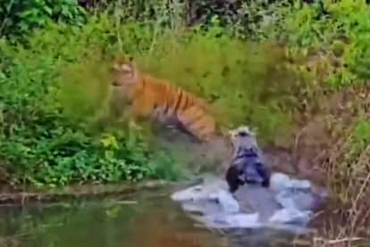 Bijnor News: मगरमच्छ ने बाघ को पीछे हटने के लिए किया मजबूर
