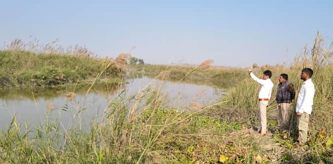 चांदपुर के खानपुर खादर क्षेत्र में नाको वाली झील देखते वन विभाग के अधिकारी। स्रोत विभाग