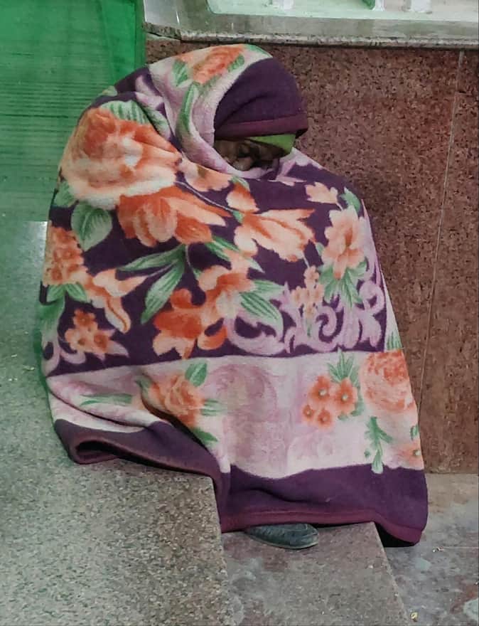 बिजनौर में रेलवे स्टेशन के बाहर ठंड में बैठा व्यक्ति संवाद