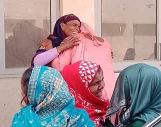 बिजनौर में साकेत कालोन विवाहिता की हत्या के बाद विलाप करते परिजन।