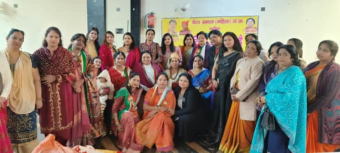 नगीना में वैश्य समाज महिला संगठन के स्थापना दिवस पर आयोजित कार्यक्रम में भाग लेती महिलाएं। स्रो