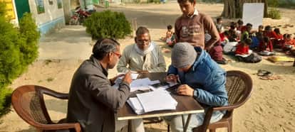 एसआईआर का काम करते बीएलओ, साथ में ग्रामीण। स्रोत- ग्रामीण
