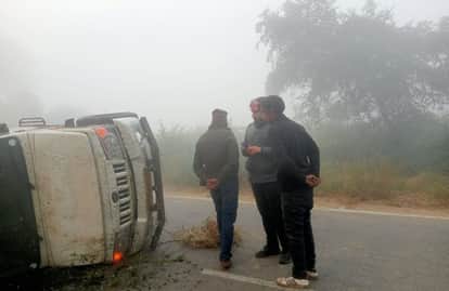 Budaun News: मांस लेकर सैदपुर जा रहा लोडर वाहन पलटा