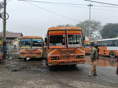 शहर में रोडवेज स्टेशन पर खड़ी बसें। संवाद