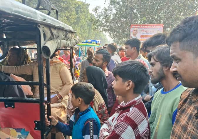 कोतवाली सामने ई- रिक्शा को घेरे खड़े मृत मासूम बच्ची के परिजन। संवाद