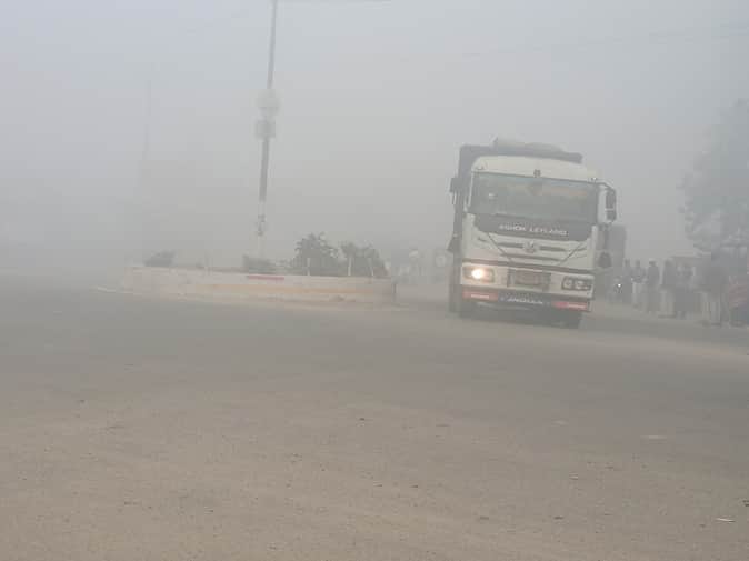 कोहरे के बीच सड़क पर निकलते वाहन। स्रोत- ग्रामीण