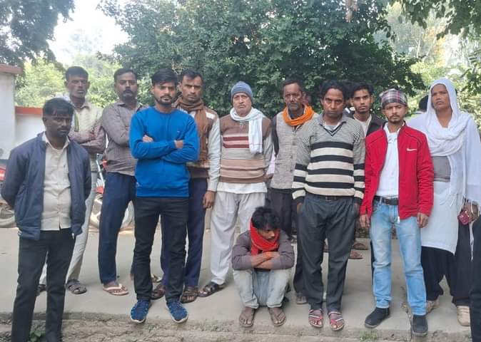 मुकेश की मौत के गमगीन खड़े परिजन व रिश्तेदार। संवाद- फोटो : सिरसागंज में परचून की गोदाम में मिला पटाखों का जखीरा। स्रोतः पुलिस