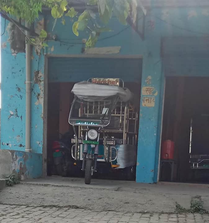 शोरूम में खड़ा ई-रिक्शा। संवाद