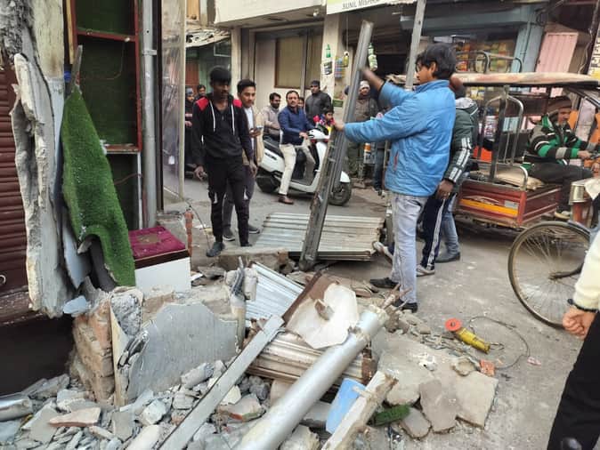 कार्रवाई के बाद मलबा हटाते दुकानदार, संवाद- फोटो : मृतक रामू ।