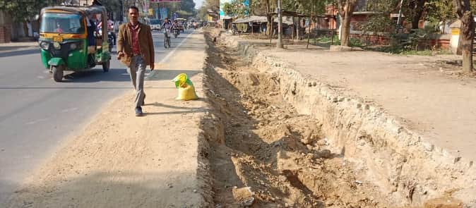 मझिया चौराहे के पास सड़क खोदी गई। संवाद- फोटो : samvad