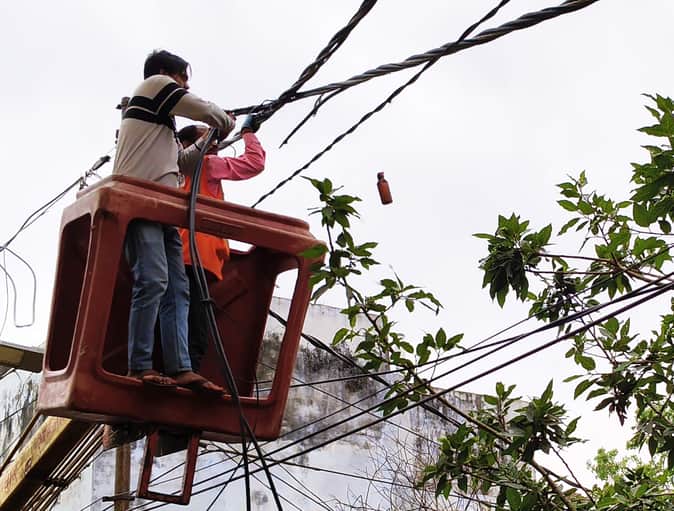 जलालाबाद में बंच केबिल की मरम्मत करते कर्मचारी। संवाद