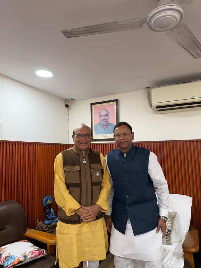 भाजपा प्रदेश अध्यक्ष से मिलते एमएलसी बागीश पाठक। स्रोत- स्वयं