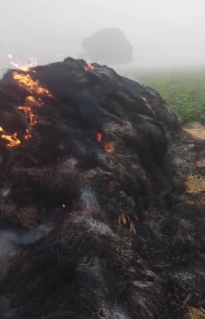 परसिया गांव के खेत में जला हुआ पुआल का ढेर। संवाद