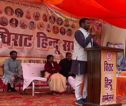 कादरचौक में विराट हिंदू सम्मेलन में बोलते मुख्य अतिथि। संवाद