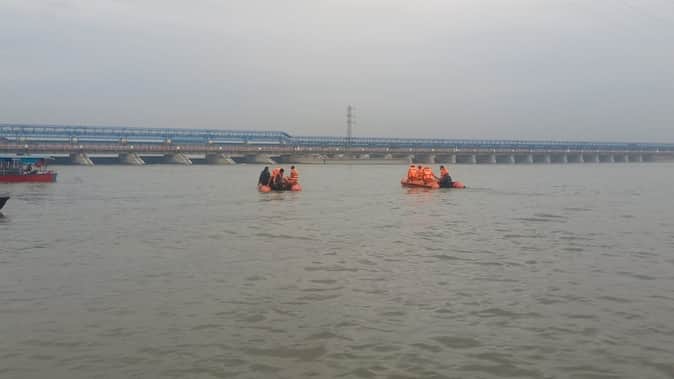 नरौरा में गंगा में लापता युवती की तलाश करती एनडीआरएफ की टीम। संवाद