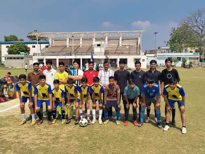 नगर के यमुनापुरम स्टेडियम में फुटबाल टीम के साथ जिला क्रीड़ाधिकारी। स्रोत : खेल विभाग
