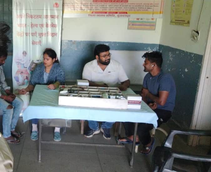 अहमदगढ़ पीएचसी पर आरोग्य मेले में मरीजों को परामर्श देते फार्मासिस्ट। स्रोत : स्वास्थ्य विभाग