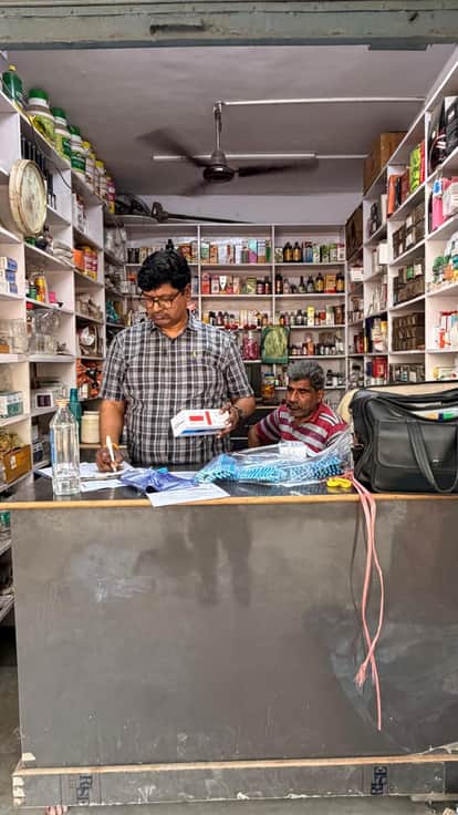 गुलावठी में मेडिकल स्टोर पर दवाओं की जांच करते औषधि निरीक्षक। स्रोत : औषधि विभाग