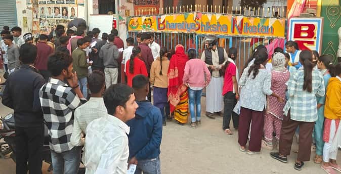 दुलहीपुर में परीक्षा केंद्र के बाहर प्रवेश पत्र की जांच करते शिक्षक। स्रोत:-जागरूक पाठक