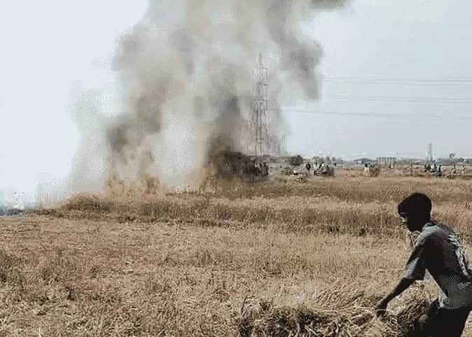 सकलडीहा के बथावर गांव में गेेहूं की फसल मे लगी आग को बुझाते किसान। स्रोत: जागरूक पाठक्