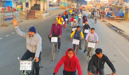 स्वास्थ्य जागरूकता साइकिल यात्रा में शामिल लोग। स्रोत आयोजक