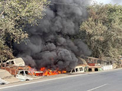 Chandauli News: पुलिस यार्ड में खड़े वाहनों में लगी भीषण आग, 12 हुए राख