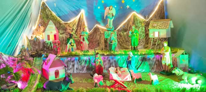 क्रिसमस के मौके पर पीडीडीयू नगर के बाल यीशु चर्च में सजी चरनी की झांकी। संवाद